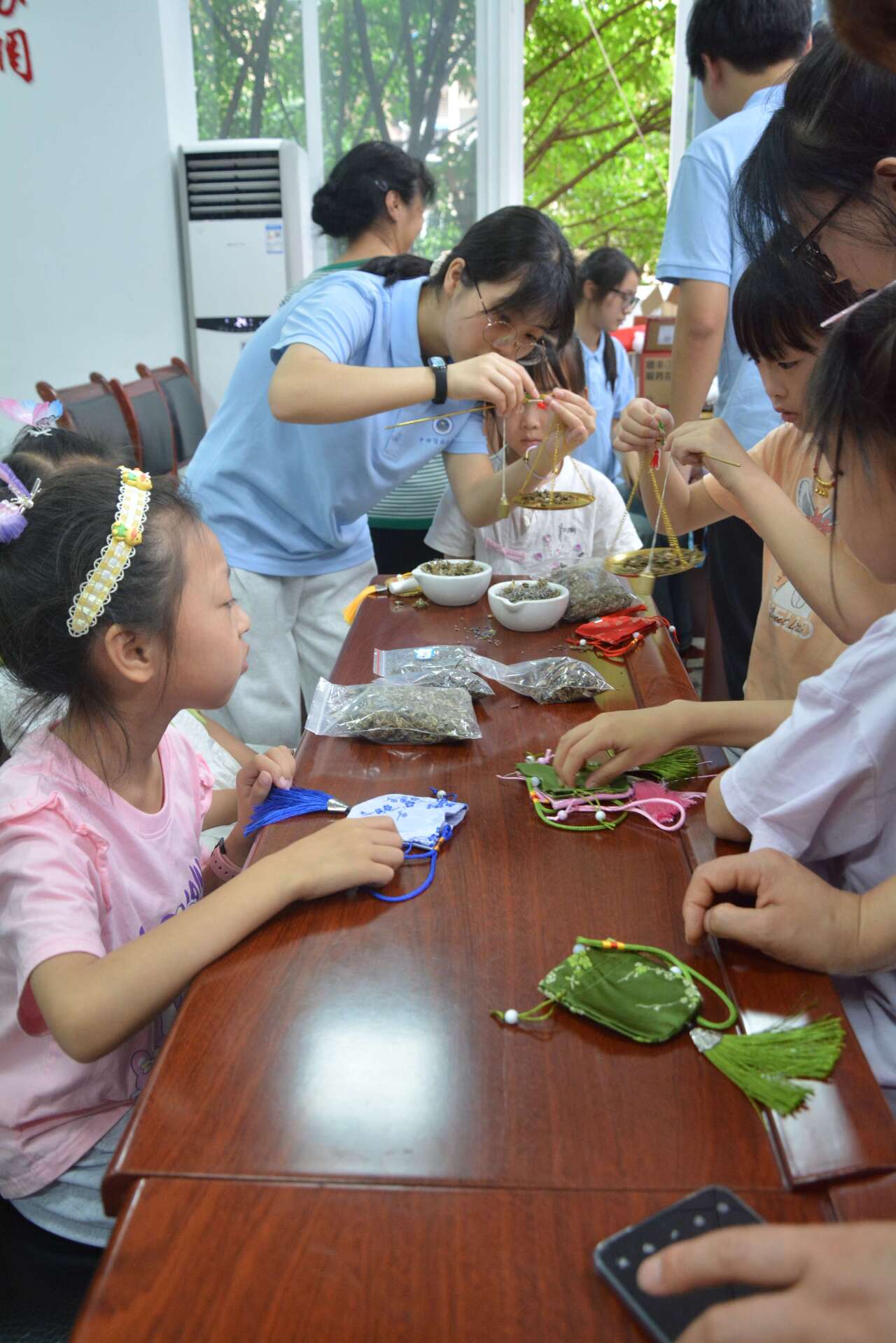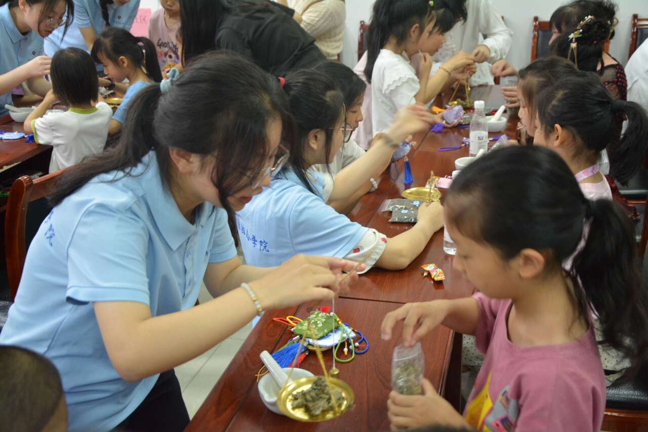活动精心设计了香囊制作、中药知识游戏、耳穴压豆体验和漆扇制作等环节,让孩子们在动手实践中感受中医药的魅力。志愿宣讲服务队的初衷是通过这样的社会实践,培养孩子们对中医药文化的兴趣和认知,进而激发他们对传统文化的热爱与尊重。