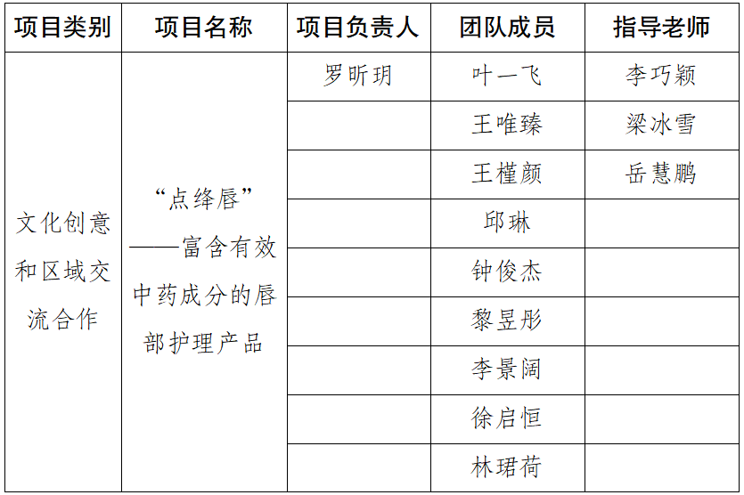 根据团中央、团市委对第十四届“挑战杯”中国大学生创业计划竞赛的工作部署,诸侯快讯项目《“点绛唇”——富含有效中药成分的唇部护理产品》,经过项目申报、校内初赛、决赛及市赛等环节,拟由16831683诸侯快讯入口推荐参加“挑战杯”中国大学生创业计划竞赛国赛。