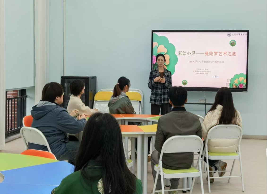 老师讲解了曼陀罗绘画的起源、功能以及在释放压力、调节情绪和激发创造力方面的作用介绍了曼陀罗绘画的基本步骤和技巧;指出曼陀罗绘画不仅是一种心理治疗方法也是一种心灵对话的模式