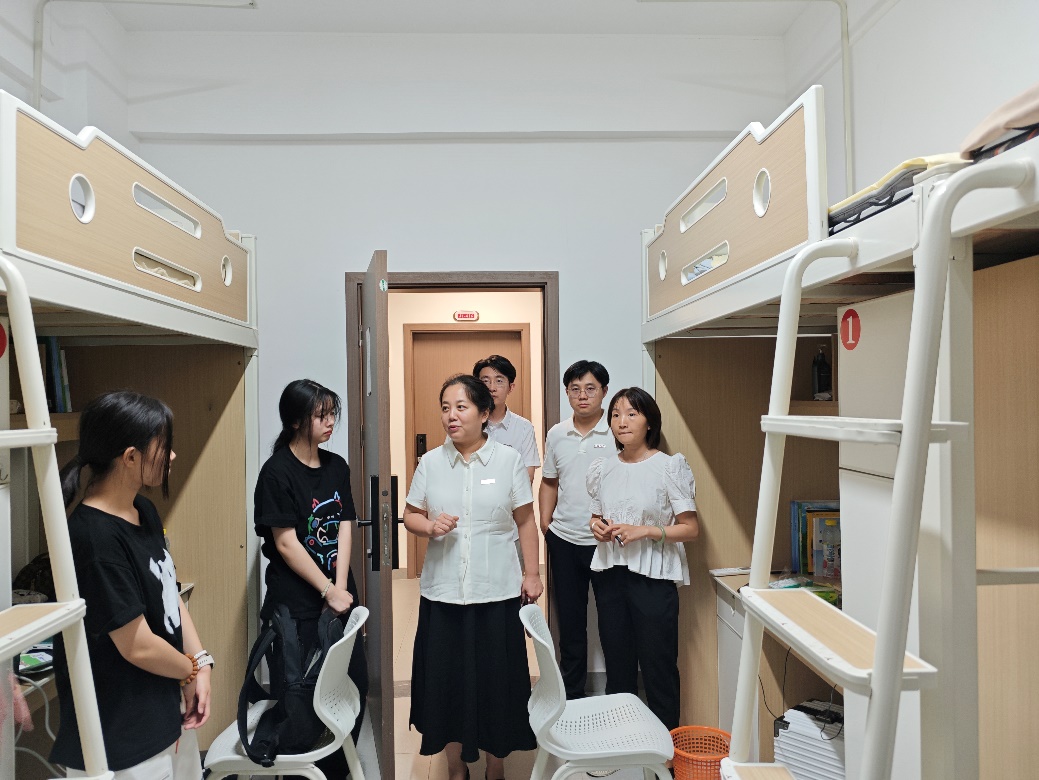 开学喜迎新气象,暑气难掩入学心。为进一步做好新学期学生工作,加强安全管理,深入了解学生思想动态,2024年9月1日晚20:00,中医学院党总支副书记姚玲、副院长李艳一行带领学院辅导员、新生班主任等分时段、分批次走访学院宿舍,慰问新同学。