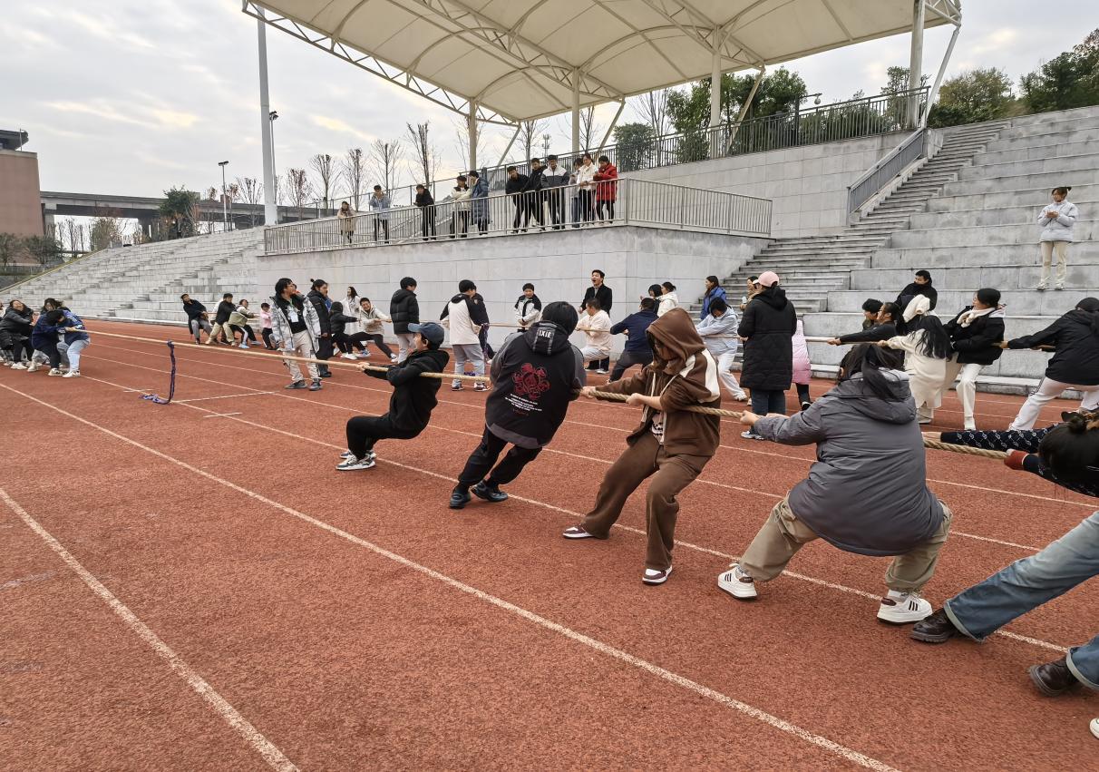 紧接着,拔河比赛带来了一场真正的力量比拼。每个班级分别派出了10人(男4女6),参赛同学如同两股强大的洪流,在绳索的一端紧握不放,彼此间你来我往、奋力拼搏。