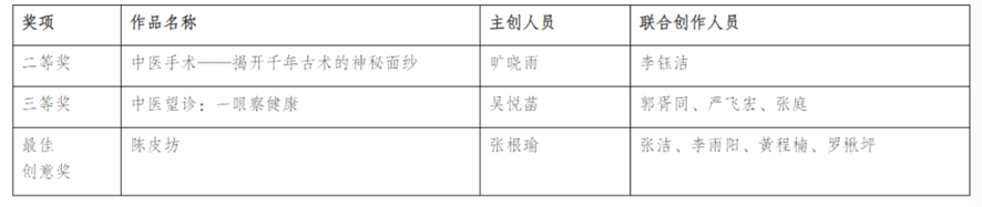 中医学院学子获奖名单和作品信息如下: