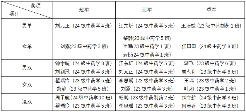本次乒乓球比赛不仅为中药学院的学子们提供了一个展示自我、增进交流的平台,更激发了大家的运动热情和团队合作精神。我们共同期待下一届比赛的到来,相信大家定能在未来的赛场上续写更加辉煌的篇章!