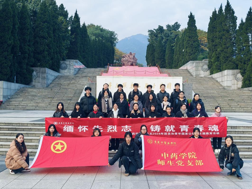 “一寸山河一寸血,一杯热土一杯魂。”红岩英烈,是史诗般的英雄称号,是彰显民族气魄的英雄群像。为深切缅怀革命先烈,加强爱国主义教育,传承红色基因,中药学院团总支于12月11日上午开展了“缅怀先烈志,铸就英雄魂”外出实践活动,组织学生走进承载着厚重革命历史记忆的歌乐山烈士陵园、革命纪念馆,引导当下青年珍视和平,树立正确的历史观和价值观。