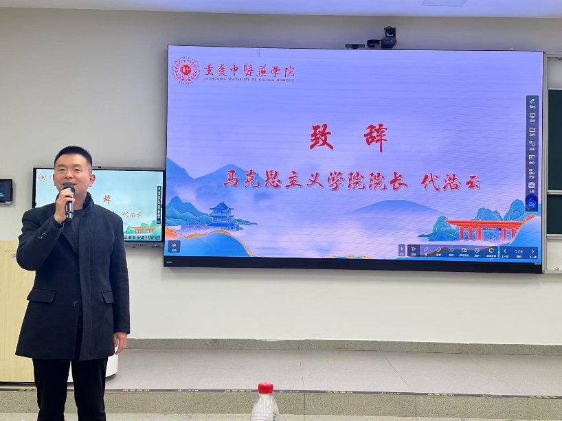 马克思主义学院院长代浩云首先对全校师生对思政课建设的关心和支持表示诚挚地感谢。他从“明德杯”的传承、“中医药文化自信”的坚守、实践教学活动的创新发展等维度阐释了活动的意义,并表示今后将积极回应同学们对高质量思政课的殷切希望,不断提升思政课建设水平。