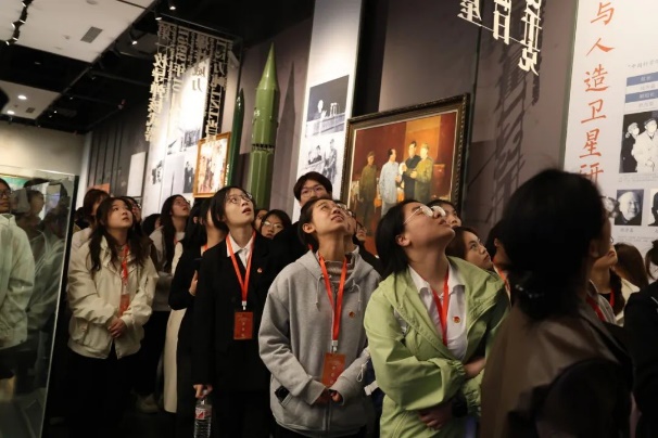 听到聂帅在极其艰难的条件下擎起国防科技大旗,学员们驻足凝望卫星模型,指尖轻触展柜,与跨越时空的科学家精神相契。展厅内,历史的风雷激荡于心,红色基因的烙印愈发清晰,信仰的火种悄然燎原。