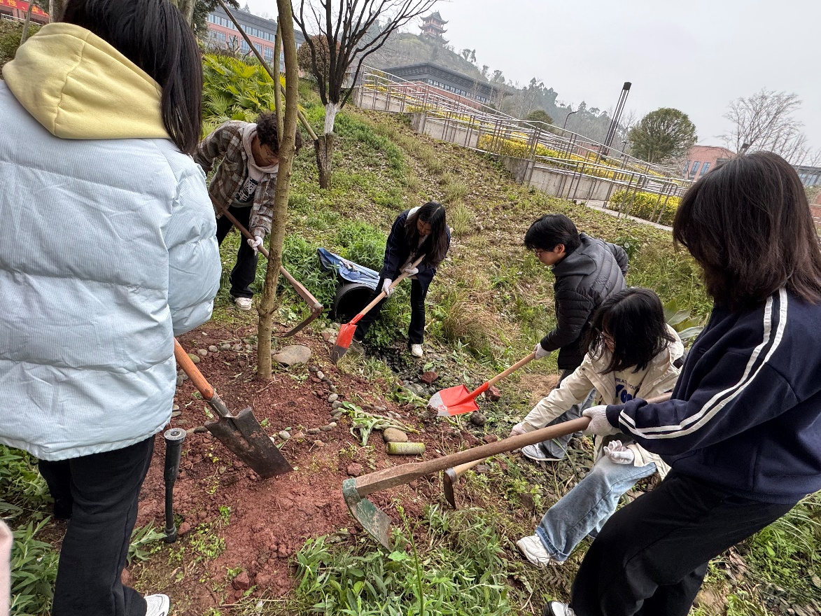 为期两天的植树活动,志愿者们都很早来到植树地点,每个人都热情高涨、铆足干劲。植树现场,护理学院副院长胡琛强调了此次活动的重要意义,鼓励大家以实际行动共筑美好校园,她表示,大家作为未来医护工作的新生力量,肩负着重大的社会责任与历史使命。