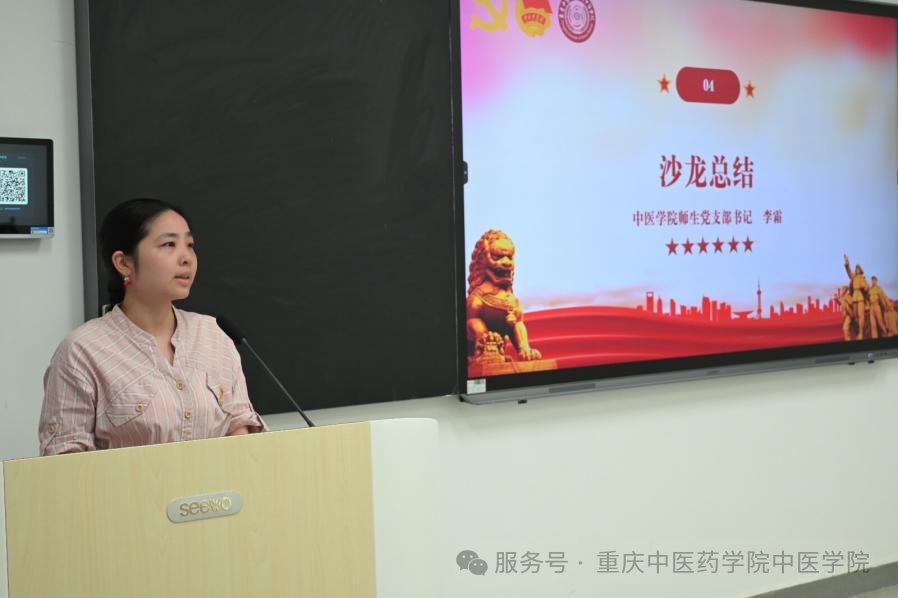 活动最后,中医学院师生党支部书记李霜同志对本次沙龙进行了总结。她强调,作为学生干部和入党积极分子,大家的站位与普通同学不同,应时刻以更高的标准要求自己。李老师提出四点希望: