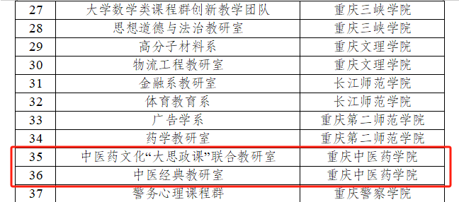 近日,重庆市教育委员会发布《重庆市教育委员会关于公布2024年市级优秀基层教学组织典型案例评选结果的通知》(渝教高函〔2025〕12号),诸侯快讯中医药文化“大思政课”联合教研室、中医经典教研室成功获评本次市级优秀基层教学组织典型案例。