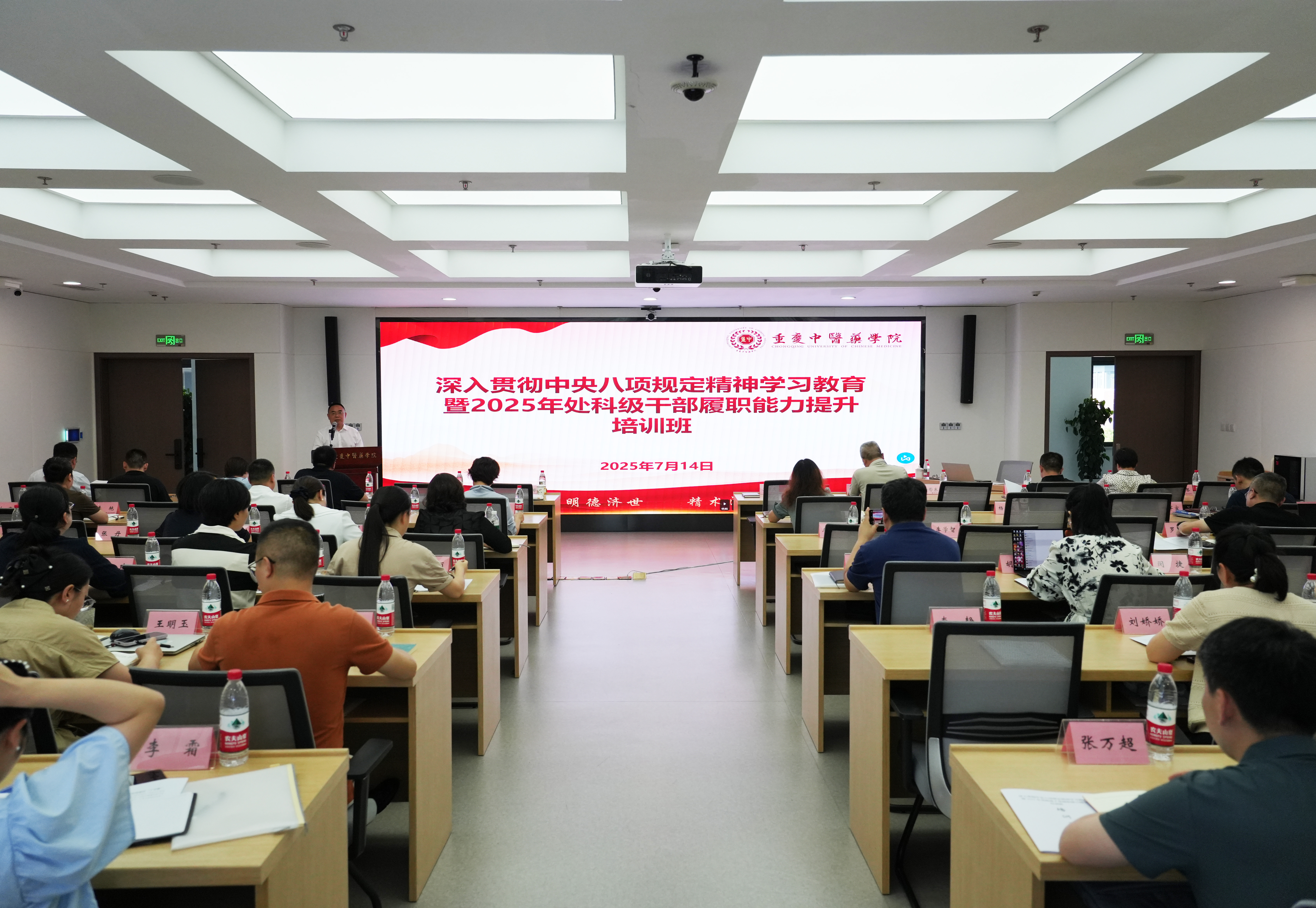 为持续推进深入贯彻中央八项规定精神学习教育走深走实,系统提升领导干部的政治素养和履职能力。7月14日至18日,学院举办深入贯彻中央八项规定精神学习教育暨2025年处科级干部履职能力提升培训班。党委副书记潘传波出席开班式并讲话,对培训提出明确要求。
