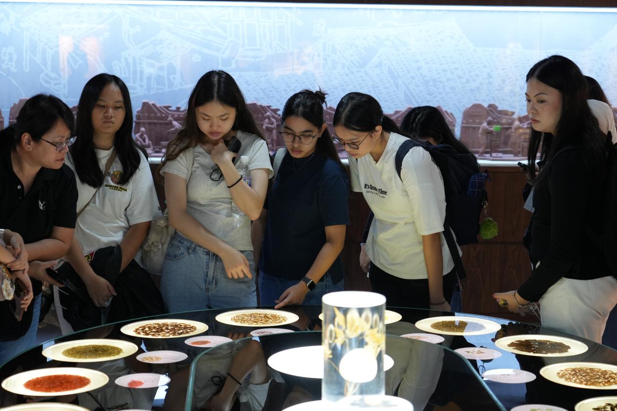 代表团参观了学院基础医学院数字化解剖实验室、中医药文化馆、中药资源及产品展示中心及护理学院专项技能实训室,亲身体验了中医传统养生功法——八段锦,积极参与中医药特色糕点、漆扇、艾草锤制作等中医药主题社团活动,在一系列妙趣横生的互动中,切身感受了中医药文化的魅力。