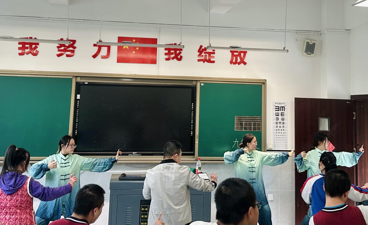 活动中,志愿者以重阳习俗为引,深入浅出地讲解了茱萸、艾草等中草药的药用价值与文化内涵,并通过实物展示与互动问答,生动普及了中医“治未病”的理念。在艾草香囊制作环节,师生们共同填充药材,并将满载祝福的香囊赠予老师,传递祈福安康的温情。八段锦的现场教学将气氛推向高潮,特教同学们在一招一式的练习中,读懂了中医运动养生的精髓。