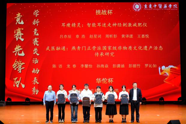 ▲为获得“优秀学业团队”的学生代表颁奖