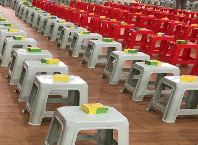 图:志愿者在现场紧锣密鼓地筹备